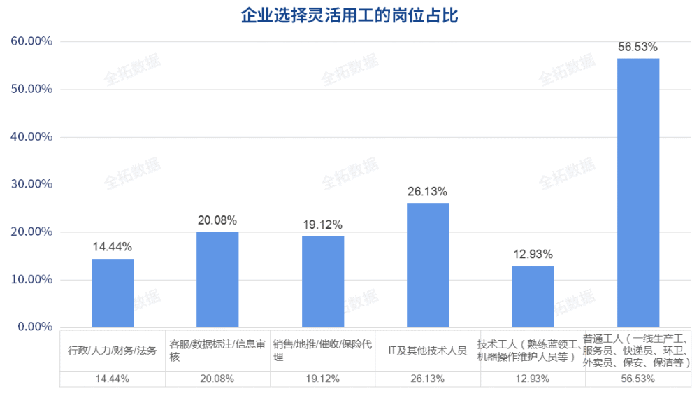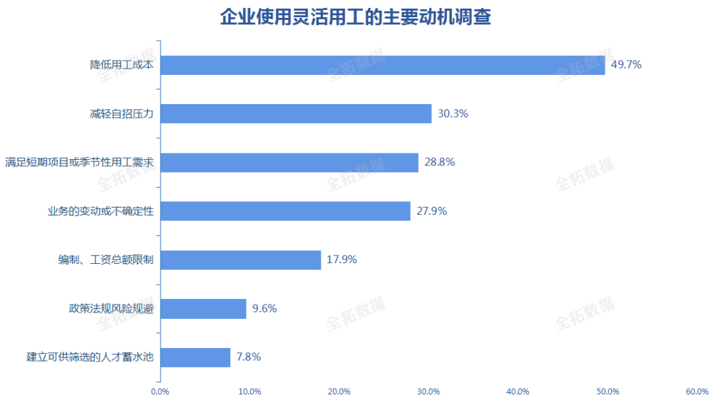 人力资源市场迎来行业新风口,灵活用工成为未来发展的大趋势来源:全拓数据 随着共享经济、数字经济的飞速发展,灵活用工逐渐成为国内重要的就业模式。多样的灵活用工模式吸纳了大量劳动力,解决了不少企业季节性“用工荒”的难题。灵活用工对企业而言,免去了社保等用工成本,对于劳动者而言,则保障了就业的灵活、自由,提高了收入。这一作用在近年疫情影响下更加放大,使灵活用工成为近两年的热门话题。